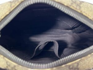 まず外観チェックでは、キャンバス地部分に大きな擦り傷やコーティングの剥がれ、色抜けや変色がないことを確認しました。持ち手やストラップ金具、ファスナーなど金属部品にもさびや変形、メッキの剥落は見られず、内部のステッチや縫製もほつれや緩みがなくきれいな状態でした。特にGGスプリームのような柄アイテムは、表面の状態や金具のコンディションによって査定額に差が出やすいため、これだけ良好であったことは、当社のグッチ 出張買取基準でも高評価につながりました。