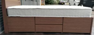 設置環境についても良好で、過度な汚れや湿気による劣化は見られませんでした。ベッドは使用環境の影響を受けやすい家具ですが、本品は清潔に保たれており、においやシミなどもほとんど見受けられませんでした。再販時の印象も良く、十分に商品価値を維持している状態でした。衛生面の良さも評価につながっています。