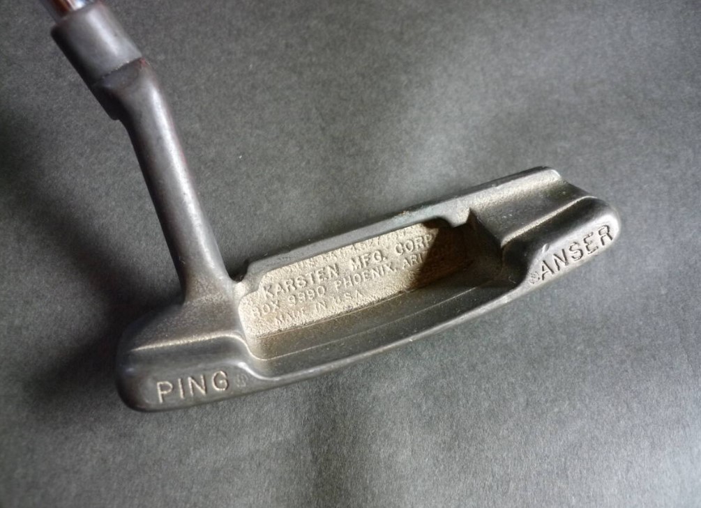 ピン アンサー ブロンズは、ブロンズ素材(もしくはマンガロイ系合金)を採用したワンピース構造が特徴で、弾き感が強すぎない“しっとりした打感”が得られるのが魅力です。フェース面には当時のピンらしいフラットな仕上げが施され、インパクトの衝撃が大きく伝わりすぎない柔らかさが保持されています。