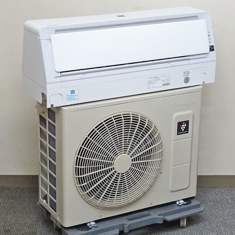 AY-P28H(2022年製)は、シャープの実用スタンダード~主力帯に位置づく10畳クラス(2.8kW)の壁掛けエアコンです。シリーズ方針は、直感的なリモコンUI/単相100Vでの導入容易性/日常清掃のしやすさを軸に、冷暖房・除湿の“基本性能を素直に”まとめること。上位のプレミアム機のような多彩なセンシングや複雑な気流制御に依存せず、迷わず・手早く・きちんと効く実用機として設計されています。停止後の内部乾燥(内部クリーン)や熱交換器の防汚配慮など清潔面の手当ても押さえられており、(販路・ロットにより)プラズマクラスター系の空質ケア機能を備える個体も見られます。最終仕様は個体差があるため、当店査定では実機メニュー表示・銘板・取扱説明書で確認のうえ評価します。