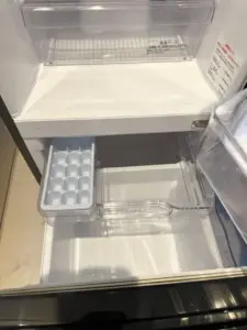 製氷皿や棚板などの部品が揃っているかどうかも重要な評価ポイントです。部品が欠けている場合でも買取不可になるわけではありませんが、揃っている方が再販時の評価は高くなります。今回のお品物は、基本的な部品が揃っており、その点もプラス評価となりました。説明書は必須ではありませんが、ある場合は付加価値として考慮します。
