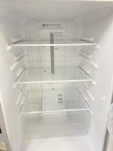 今回のお品物は、外観・庫内ともに良好なコンディションでした。本体外装には目立つキズやへこみは見られず、日常使用に伴う軽微なスレ程度に収まっていました。ドア部分の開閉もスムーズで、パッキンの劣化や緩みもなく密閉性がしっかり保たれていました。外観全体に清潔感があり、再販時の印象も良好な状態でした。設置環境の良さが感じられる個体でした。