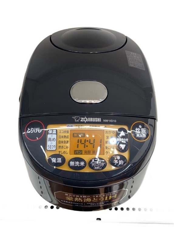 NW-VD10-BAは、5.5合という家庭用で最も使用頻度の高い容量帯において、味・炊き上がり・使いやすさ・お手入れ性の全てを高めた仕様を備えたモデルです。IH方式ながら気軽に使える価格帯で、「毎日のご飯を少しでも美味しく」「手入れを楽に」したいというユーザーにとって非常に魅力のある選択肢です。当店では、こうした仕様優位モデルを状態次第で高評価対象と位置付けており、状態の良い個体についてはぜひお気軽にご相談いただきたいと思います。