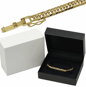 ブレスレットは日常使いされやすいため、留め具の緩みやコマの伸びを確認します。ただし916刻印の金は素材価値が高いため、多少の使用感があっても大幅なマイナスになりにくいのが特徴です。