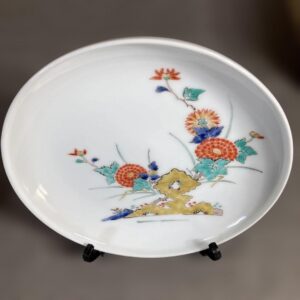酒井田柿右衛門 買取 |東京都台東区まで出張買取で骨董品[【柿右衛門】赤絵の伝統 日本名窯 人間国宝 十三代酒井田柿右衛門作 錦岩菊文 皿]を高価買取しました。
